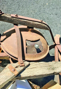 Here at the Hancock County (Iowa) Agricultural Museum & Pioneer Village, we are restoring an Easy Way hay loader built by Sandwich Mfg. Co., Sandwich, Illinois, between 1912 and into the 1920s. The company was purchased by New Idea Co. in about 1930. We want to learn about the color scheme for this loader. The donor thinks the wooden parts may have been orange or light red. Perhaps scraping away more dried-up grease and dirt will help reveal the color of the wheels.