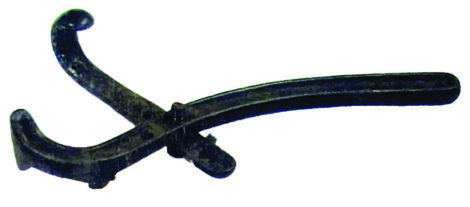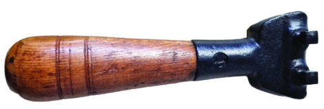 Handle used to lift the iron burners of an old-fashioned cook stove. The slots of the tool fit into the slots of the burner to lift them to check on or restock the wood for the fire. Identified by RuthAnn Ginder, Anderson, Ind. Photo submitted by Rodger Snyder, Juneau, Wis.