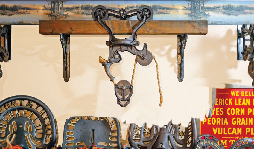 At a recent estate auction, hay carrier prices were sky-high. “Sometimes there’s just a small difference in the casting that will make one carrier slightly different from another, so it becomes much more valuable because of its rarity,” he says. “I’m always interested in getting the next one, whether it’s rare or not. If I don’t have it, I want it.”