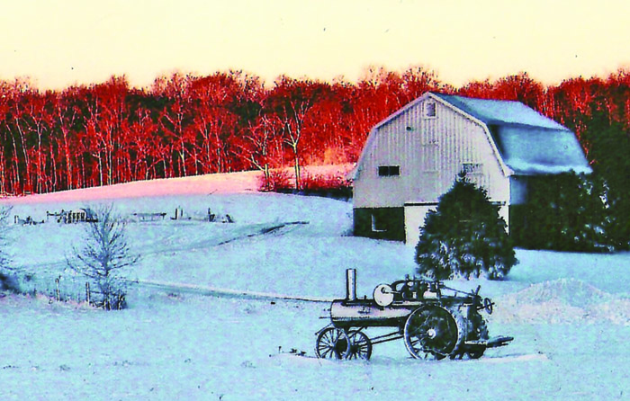 Dick Mitchell had a 14-mile run. He would go to the far end and steam his way back home. He had a 20hp double-cylinder Nichols & Shepard engine with a big water wagon, pan wagon and a Buick automobile tied on behind. Going down the road, that was a sight to see!