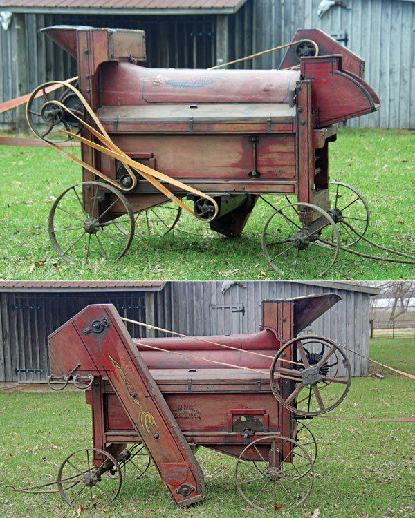 “Soon after the tractor purchase, I bought a threshing machine that needed repair work. I found an Amish farmer with a field of oats and bought 20 shocks. Friends agreed to help me repair the old beater. After finishing the repairs, she was belted up, and with a few minor adjustments, the 20 shocks were threshed.