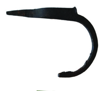 Round sickle-style downspout hook.