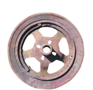In hopes that this innovation would be explored further in research, the old sprocket/pulley shown here was purchased at a flea market and photographed. It reflects all that was done by a farmer hoping to gain one more year of work with his faithful, old, worn-out machine. FC