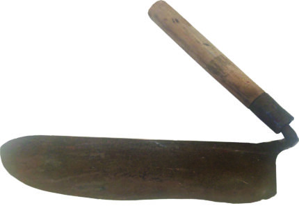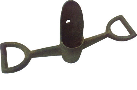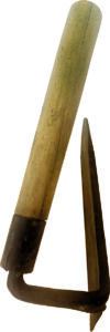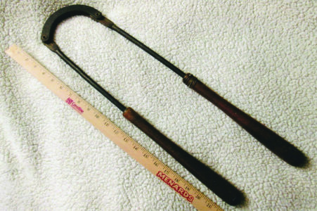 Hay knife. Identified by Bill Bracy, Murfreesboro, Tenn.; Harold Kaufman; P.T. Rathbone, Marsing, Idaho; Gil Mangels, Polson, Mont.; Erwin Fullerton, S. Woodstock, Vt.; Jack Simmons, Mt. Vernon, Ill.; and John Heath, Sullivan, Ohio. “When loose hay was harvested and stacked, it became very compacted and difficult to get small amount out to feed the animals,” Bill Bracy says. “Hay knives were made to cut long stems of hay into smaller pieces to get it loose from the stack.” Photo submitted by Ken Brein, Leonard, Minn.