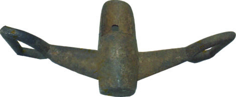 Pole crab. Used to connect horses in harness to the wooden pole running between a pair of horses, from the front axle of a carriage to the head of the horses. Some crabs accept pole pieces (leather straps); some are made for pole chains. Identified by Harold Kaufman. Photos submitted by Marvin Ball, N. Ferrisburg, Vt.