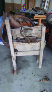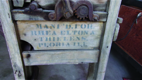 Can anyone help with information regarding a corn sheller I recently bought to restore? Lettering on the side panel reads “Manf. for Rhea, Elton & Thielens, Peoria, Ill.” I have found references to this firm as an implement dealer in Peoria dating to 1900, give or take a few years. I would like to know who the manufacturer was. I found yellow paint with black (or maybe blue) pinstripes, and 5/16-inch-wide red edges.