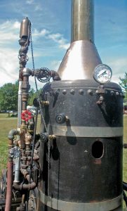 At the time, Gene had other irons in the fire, so he stashed the Rustmobile in a shed. “It was always on my back burner,” he says. “I didn’t decide to take it out until a younger buddy came over and said he’d like to help me get it running.” That involved new piping with different pressure release valves and a state inspection. The Rustmobile was approved at 135 pounds of steam per square inch. “That’s pretty good for an older boiler like that,” Gene says.