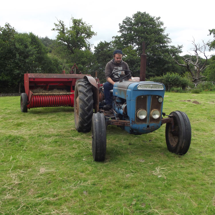 Going back to haymaking, one can run a baler to see if it works to a certain extent, but there’s only one way to properly try out a baler and that is to use it to bale a field of hay. The proof of the pudding is in the eating so to speak. In anticipation, Fig had serviced both the tractor and the baler, and they were ready to run. But just as the hay was drying nicely the fine weather started looking like it could break, and Fig’s father, Wil, was wondering whether it might be wise to just use the round baler and make haylage to get the crop harvested and wrapped, rather than risk it.