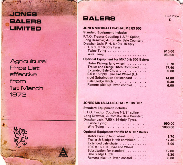 Many thanks to Gwynfor Williams, author of the book The Jones Baler Story, for his information on the Jones Mk 10 baler.