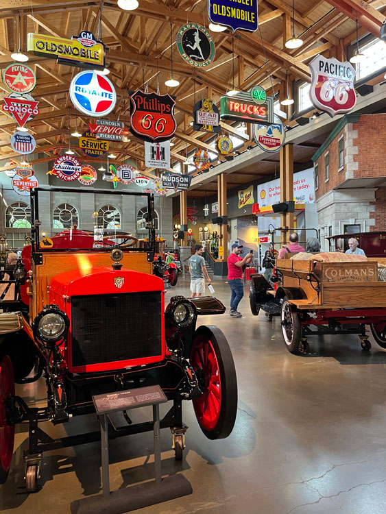 Everything at the park helped visitors travel back in time. From costumed employees to carefully preserved and furnished historic structures, everything at Heritage Park celebrated the past. The Gasoline Alley Museum, packed with immaculately restored antique cars and a vast collection of gleaming neon and porcelain signs, was a particular hit with the Farm Collector group.