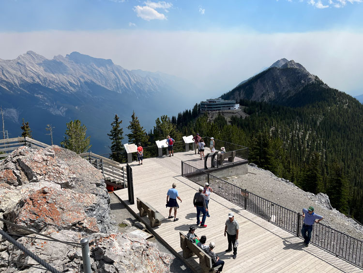 In the afternoon, we took a gondola to the top of Sulphur Mountain for a look at the Canadian Rockies. While some stretched their legs on a boardwalk leading to Sanson’s Peak nearby, others checked out displays and exhibits.
