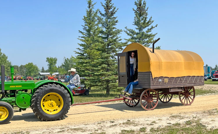 The tour ended with a day at the Manitoba Threshermen’s Reunion & Stampede featuring the International Cockshutt Farm Equipment Club. The 2023 summer show included daily parades, field demonstrations featuring horses, steam engines, tractors, plows, and harvest equipment, Homesteaders’ Village, semi-pro rodeo, classic car show, Clydesdale Classic competition, and a threshing competition.